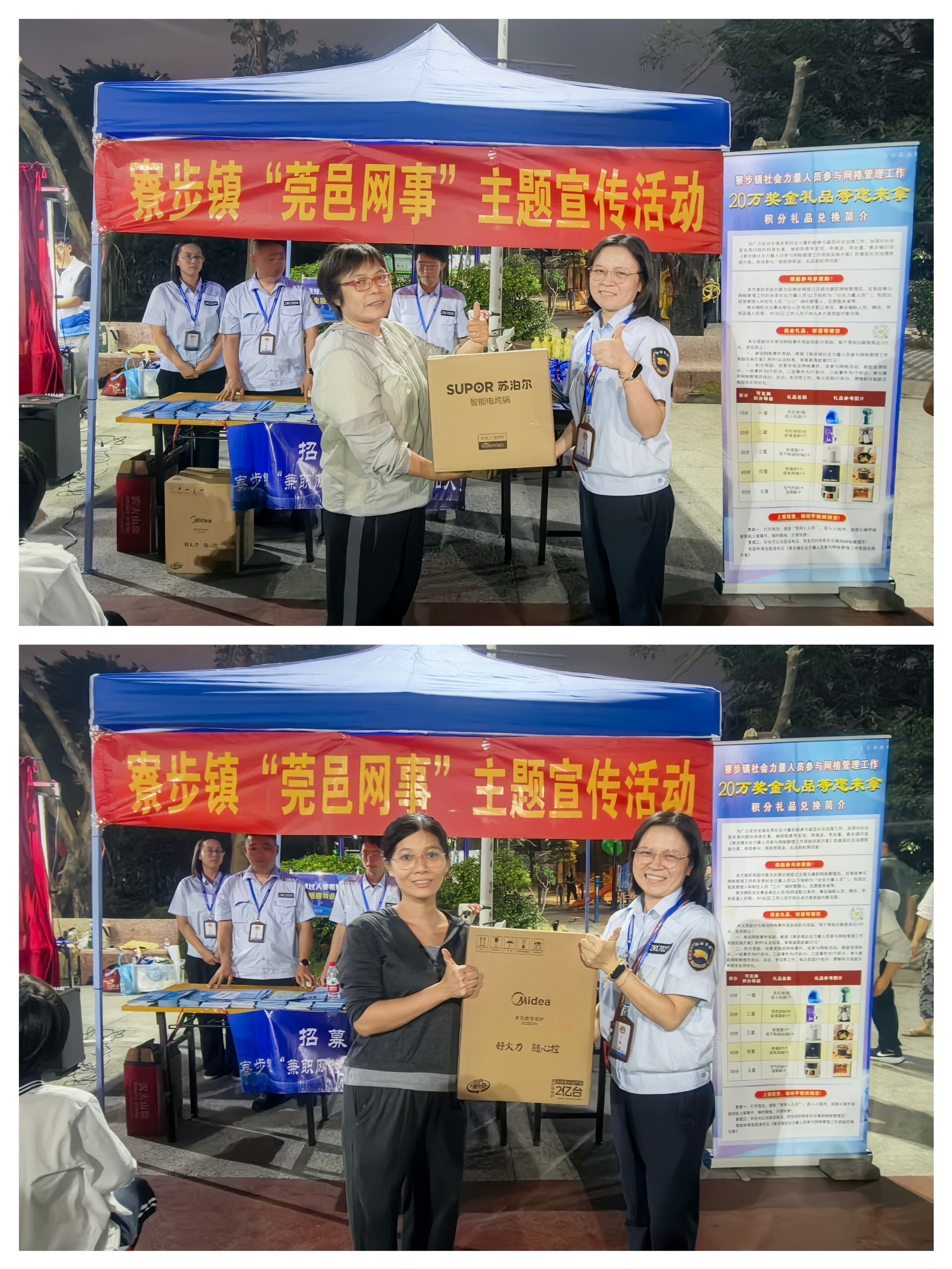 积分兑换暖人心,激发共治新活力。竹园村网格工作站为在辖区参与网格管理工作的兼职网格员派发积分兑换的电炖锅、电磁炉等礼品。今年6月份,寮步镇印发了《寮步镇社会力量人员参与网格管理工作奖励实施方案》,吸引了一批社会力量人员加入兼职网格员。兼职网格员作为活跃在社区一线的“千里眼”和“顺风耳”,通过报送网格事件,或参与网格活动,积累了宝贵的积分。兑换的礼品就是表彰他们为社区平安与和谐所做出的贡献。